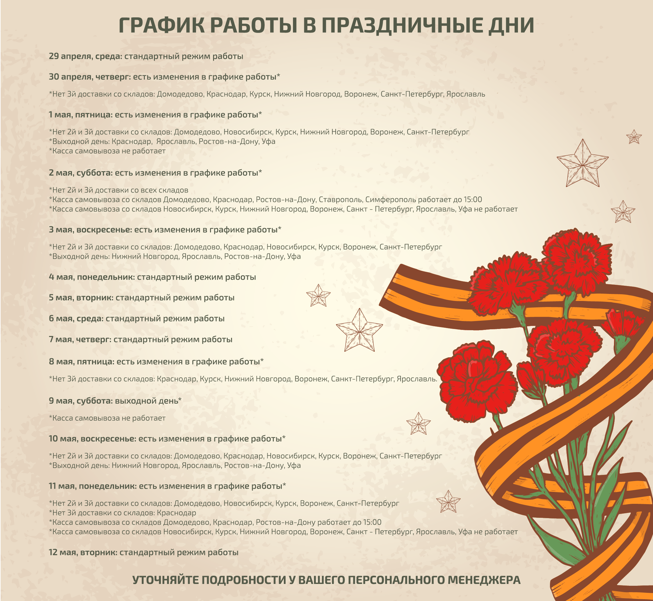 Поздравляем Вас с наступающими майскими праздниками!